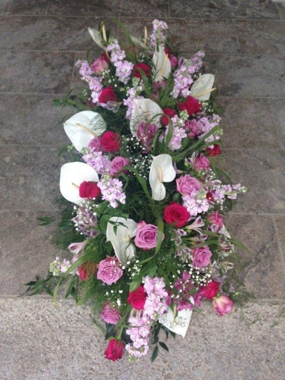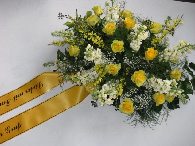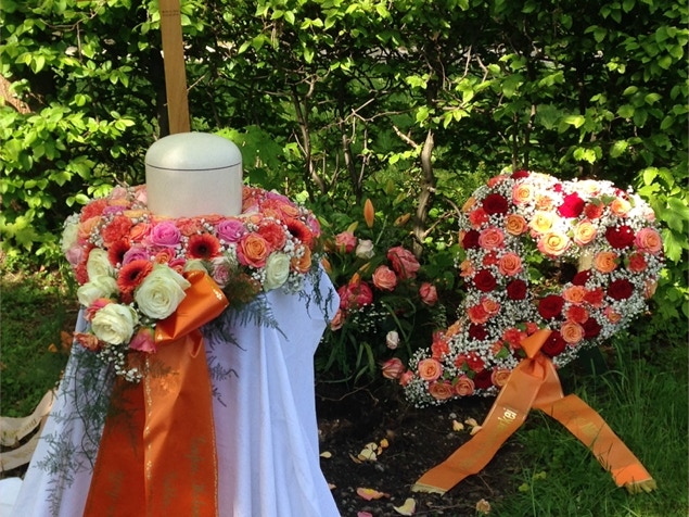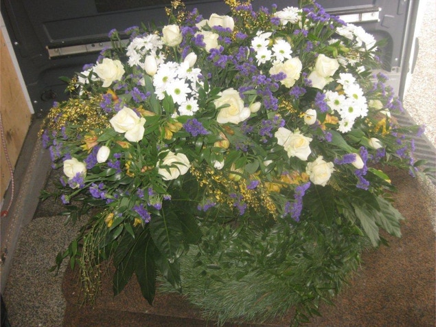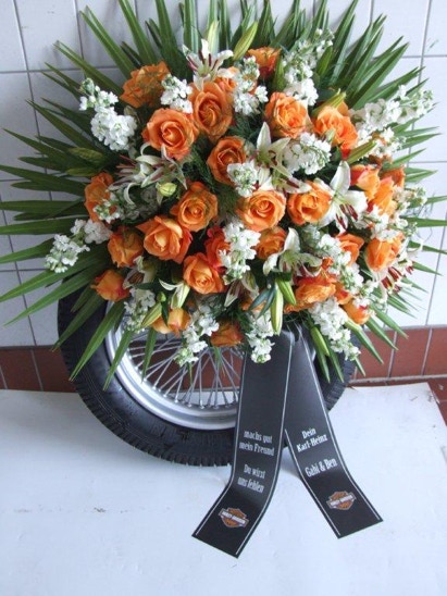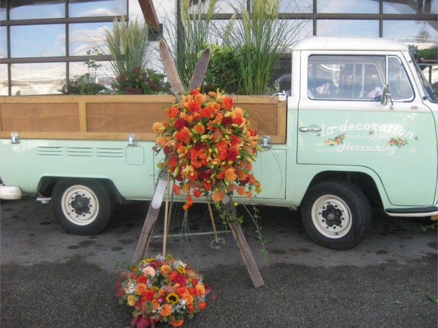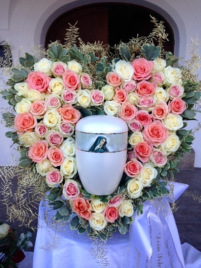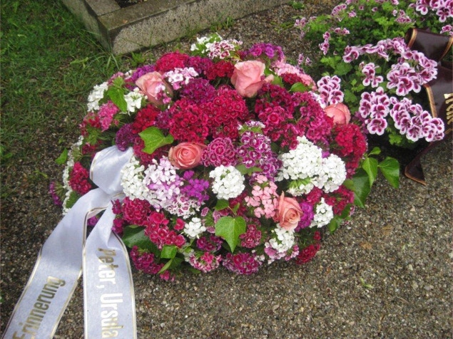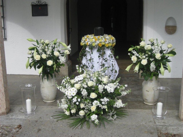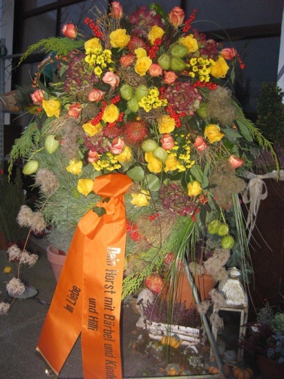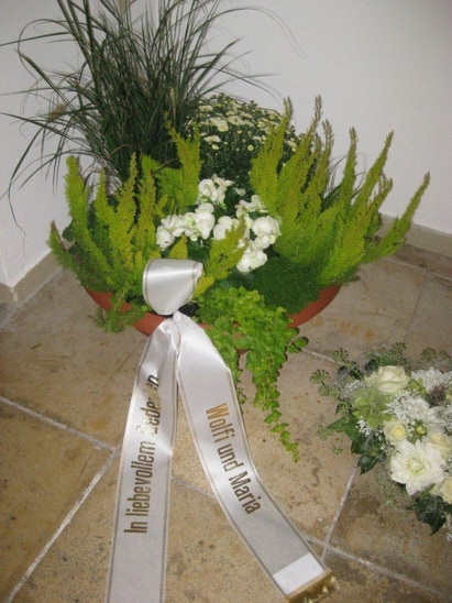 sowie Sargschmuck und Blumendekorationsgestecke für Trauerfeiern.